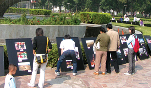 近日,由校党委宣传部、校团委主办,社团联合会摄影爱好者协会承办的金秋文化艺术节之“影像农科城”摄影作品展在北校区喷泉广场举行。这次作品展,展出的80多幅作品均由杨凌摄影家协会提供,多以杨凌及周边地区为主题。向广大同学展现了我校及周边地区的美丽风光。图为同学们在观看摄影作品。
