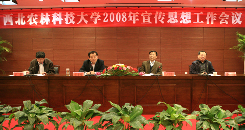 校党委副书记、副校长王革代表学校对2007年度思想宣传工作进行了回顾总结,并对2008年工作作了安排部署。2007年,我校在理论武装工作、精神文明建设、思想文化建设以及舆论引导工作等方面均取得了显著的成绩。关于2008年学校宣传思想工作,王革说,2008年是我校“质量提高年“和“改革攻坚年”,根据宣传思想工作的指导思想和工作思路,具体要抓好五项重点工作,一是以学习贯彻党的十七大精神为重点,统一思想,凝聚力量,为学校改革发展奠定坚实的思想基础;二是以社会主义核心价值体系建设为根本,鼓舞士气,振奋精神,不断推进思想道德建设;三是以正确的舆论为先导,围绕中心,服务大局,着力营造好良好的舆论氛围;四是以开展群众性的精神文明创建活动为契机,把握重点,突出主题,不断提高师生员工的综合素质;五是以建设高水平研究型大学为目标,统筹规划,协调发展,全面推进大学文化建设。
