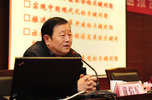 11月18日下午,中央党校党建教研部副主任戴焰军教授应邀在国际交流中心208会议室作了学习贯彻十七届五中全会精神专题报告,各学院(系、部、所)党政领导干部、机关各处室与直属单位科级以上干部、思政部教师共200多人听取报告。校党委副书记徐养福主持报告会。