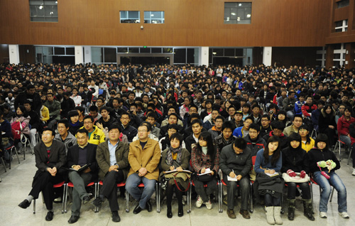 11月25日晚,由校党委宣传部和校团委共同组织的国际形势专题报告会在南校区绣山活动中心举行,中国人民大学国际关系学院副院长、外交学专业博士生导师金灿荣教授应邀作了题为《当前国际热点问题与中国外交的新挑战》的专场报告,受到现场2000多名师生的热烈欢迎和普遍好评,掌声不断。报告会由校党委宣传部部长吕卫东主持。