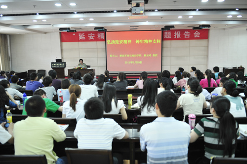 杨玉玲教授的报告援引大量的历史事实,在典型事例的分析中回答了延安精神产生的时代背景、延安精神的内涵和延安精神对现实的借鉴意义等,为师生上了一堂生动的历史课,进行了一次深刻的思想洗礼。