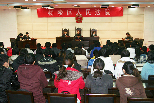 为了贯彻实施《中央宣传部、司法部关于在公民中开展法制宣传教育的第六个五年规划(2011-2015年)》,深入开展《六五普法》宣传教育工作,继续推进真实审判进校园活动,党委宣传部与人文学院联合主办,由杨陵区人民法院于12月7日上午在国际交流中心207会议室对一起盗窃案件公开开庭审判。党委宣传部副部长、杨陵区人民法院副院长、人文学院法学系部分教师及法学专业09、10级150余名学生到场旁听。庭审结束后,法学专业学生还就案件中的证据、量刑等问题与朱文斌副院长及合议庭成员进行了互动交流。