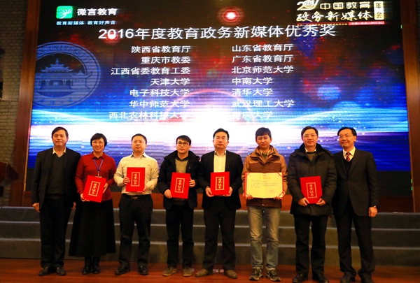 为荣获“2016年度教育政务新媒体优秀奖”的学校颁奖