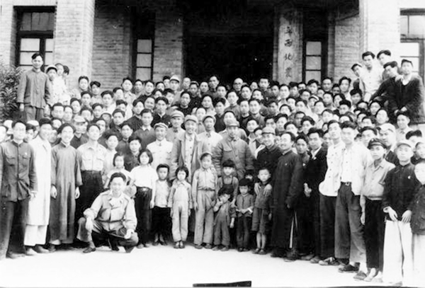 1949年5月20日,王震将军等在学校大楼(今北校区3号教学楼)前与西北农学院师生合影留念