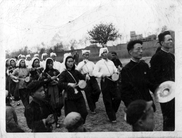 1949年,西农学生、青年教工参加欢庆解放腰鼓队游行活动