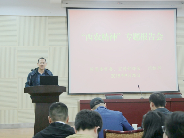 为引领学生自觉传承弘扬西农精神,激发学生建功立业、刻苦奋斗热情,9月25日晚,校党委常委、宣传部部长闫祖书应邀在信息学院作“西农精神”专题讲座,130余名学生参加。报告会由信息学院党委书记党青主持。