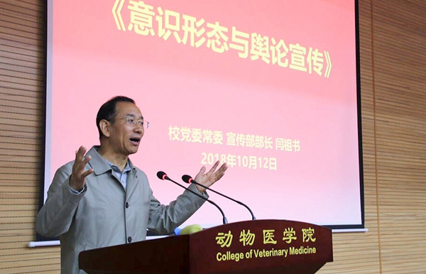 意识形态有多重要?舆论宣传工作的使命是什么?大学生记者如何做好舆论宣传工作?10月12日晚,校党委常委、宣传部部长闫祖书以“意识形态与舆论宣传”为题,向凤岗通讯社百余名学生记者作培训。