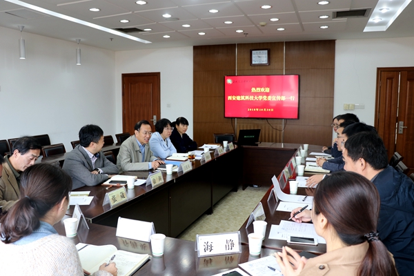 10月30日,西安建筑科技大学党委宣传部部长高瑞龙、副部长刘冠峰带领校报编辑部赵阿锋、王俊、黄东宇,校广播电视台刘昌明、 海静一行7人,就意识形态工作和新闻宣传工作来校调研。