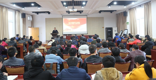 闫祖书围绕“贯彻全国教育大会精神,落实立德树人根本任务”这一主题,从解读全国高校思想政治工作会议精神、十九大报告中关于优先发展教育事业论述、北京大学座谈会上重要讲话、全国宣传思想工作会议精神做引子,详细介绍了全国教育大会召开的背景及重大意义,分析概括了召开大会的目标、主线、根本任务、根本保证、基础工作以及根本动力,并以学校学院相关案例深入讲解了“九个坚持”“六个下工夫”“四个服务”的内涵。对师生如何践行全国教育大会精神他提出了五点希望:一是必须坚定理想信念,持续加强理论武装,牢固树立“四个意识”,坚定“四个自信”;二是坚持社会主义核心价值观引领,提升个人综合素质;三是加强思想道德建设,明大德,守公德,严师德;四是潜心育人,关心爱护学生;五是弘扬西农文化与精神,勤奋工作、积极奉献。