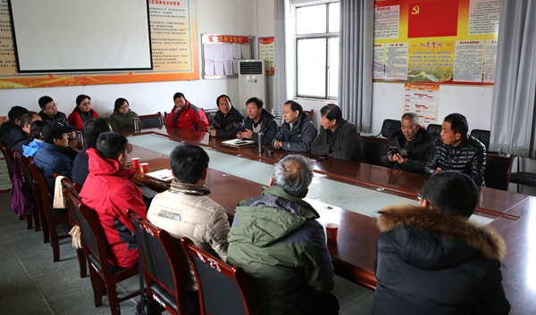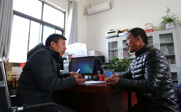 韩锁昌与乾落村党总支书记刘继玉在商讨工作