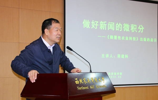 5月9日下午,在北绣山北报告厅,人民日报高级记者、我校兼职教授、校友蒋建科向我校师生赠送自己编著的《颠覆性农业科技》一书,并以“做好新闻的微积分”为题作报告,畅谈这本畅销书出版的启示。