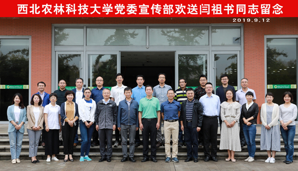 会前,校党委副书记徐养福、闫祖书与宣传部、教师工作部全体工作人员合影留念