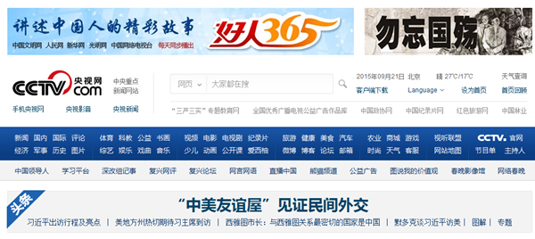 2015年9月21日央视网首页“好人365”专栏截图